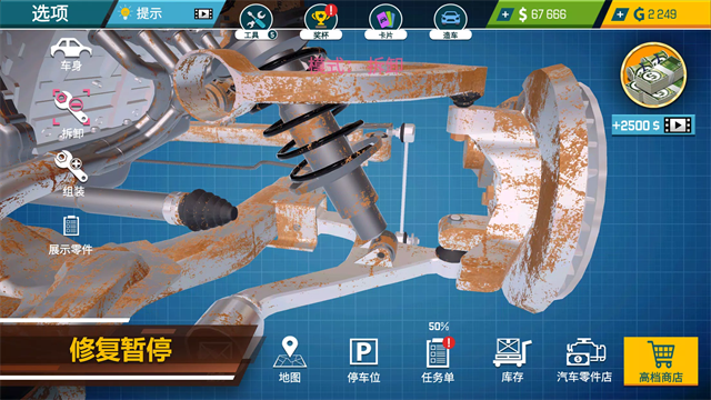 汽车修理工模拟器手机版这款汽车维修经营游戏,玩家将扮演一名汽车修理工,通过修理和改装经典汽车来提升修理厂的声誉和收入。修理工作包括检查和修理发动机、制动器、排气装置、齿轮箱和底盘。