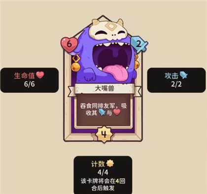 2、大嘴兽(可以不停吃多头鸟、影子召唤物来无限增长生命和攻击),前期可能凑不了的情况下就吃准准吧…