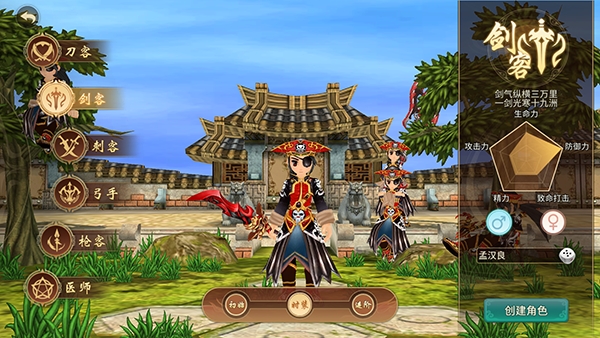1、剑客:具有高攻击力、高机动性和不俗的防御能力,擅长单体攻击和群体控制,技能流畅,动作帅气,适合喜欢近战、喜欢控制场面的玩家。