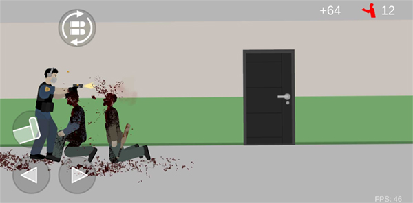 分别是往左走和往右走,左上角分别是换枪和换子弹,右下角的是一个保命技能,僵尸如果靠近你你可以用踢腿运动将它踢倒或者后退,游戏中最多可以一次踢到两个僵尸,运用好该技能你将会轻松许多,顺带提一下,游戏中你用枪射击僵尸腿一次会得到2块钱,射击僵尸身体一次会得到5块钱,射击僵尸头部一次会得到10块钱,好像没什么不对的。