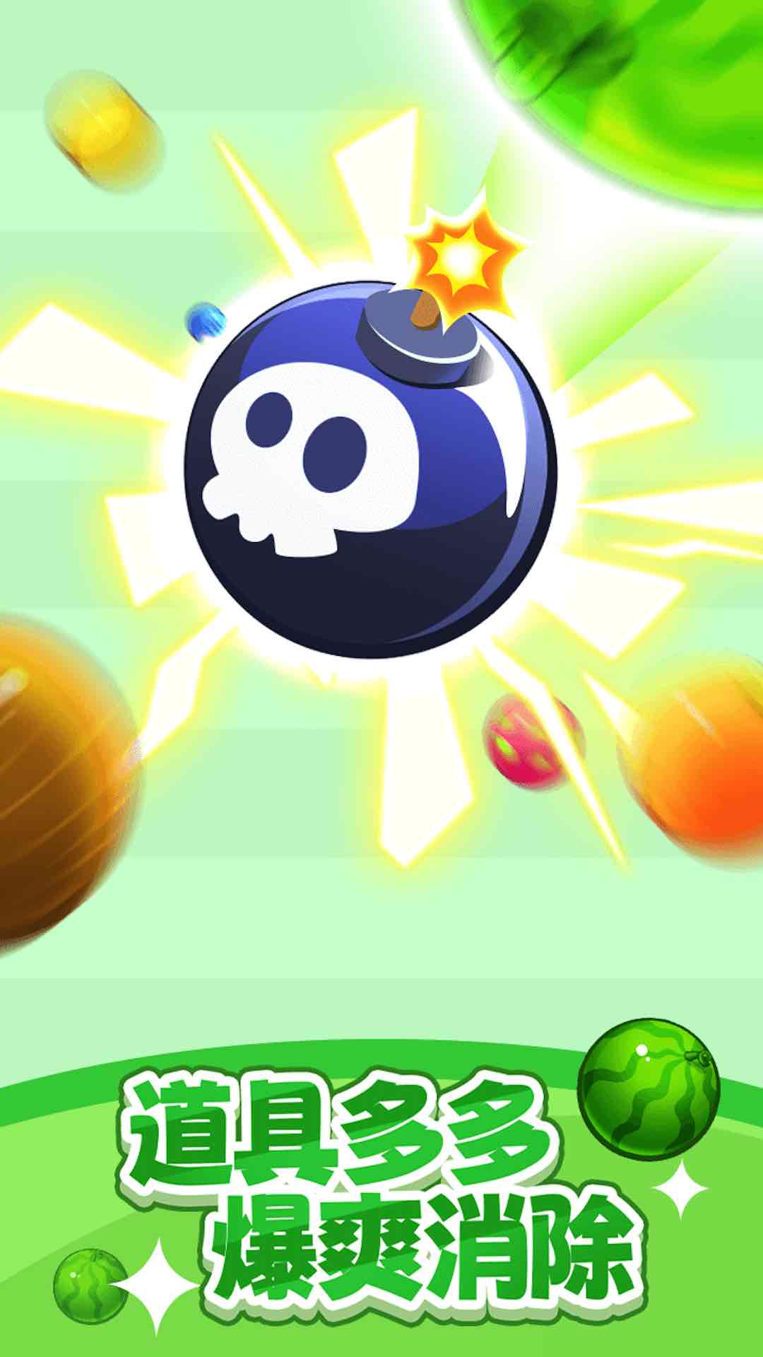 2. 清新视觉体验:低饱和度配色搭配圆润水果造型,渐变粒子消除特效精致,长时间游玩无视觉疲劳,适配休闲场景。