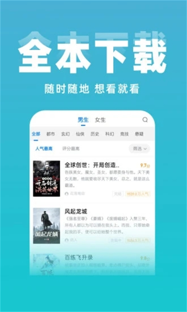 2、提供各种类型小说的排行榜,用户可以根据排行榜选择自己要阅读的小说,发现更多小说。