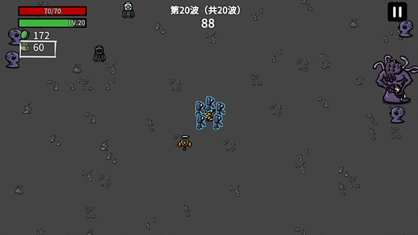 2、收集材料快速获得经验,并在一波又一波的敌人到来间隙中在商店策略购买道具。