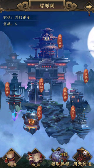 5、每日向门派掌门,请安可以获得门派贡献,在门派-执法长老-职务晋升处可以花100贡献领取每日奖励,奖励视门派职务而定