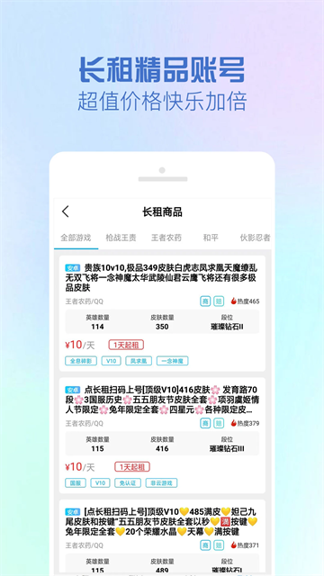 GG租号平台下载中有着丰富的账号资源、便捷的上号工具以及贴心的客服服务赢得了广大玩家的好评,它不仅为玩家提供了快速获取高端游戏账号的便捷途径,还通过技术创新简化了游戏登录流程,让玩家能够更加专注于游戏本身的乐趣,平台还拥有一支专业的客服团队,24小时在线为玩家解答疑问、处理反馈,确保每位玩家都能享受到贴心、高效的服务体验,喜欢的话就赶紧来下载体验吧!
