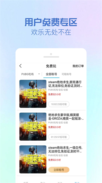 GG租号专业版是非常便捷的游戏账号租赁平台,汇聚各大主流游戏不同等级的账号,可以轻松搜索租用,还能享受便捷的上号体验,帮助大家随时租用各种游戏账号。