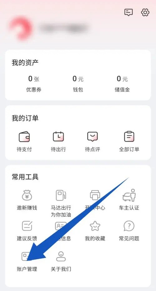 在我的页面,点击账户管理选项。