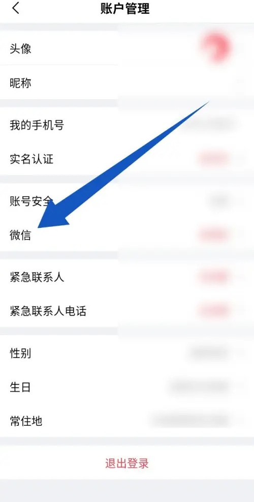 在账户管理页面,点击微信选项。