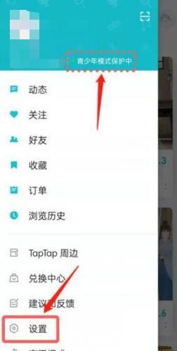 2、这时在左侧的菜单栏页面可以看到青少年模式正在开启,点击设置。
