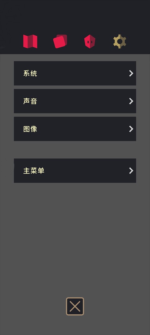 1、初次进入游戏会自动进入设置界面,玩家在此可以进行各种设置,比如声音、图像等,待设置完成后点击下方的×即可进入游戏。