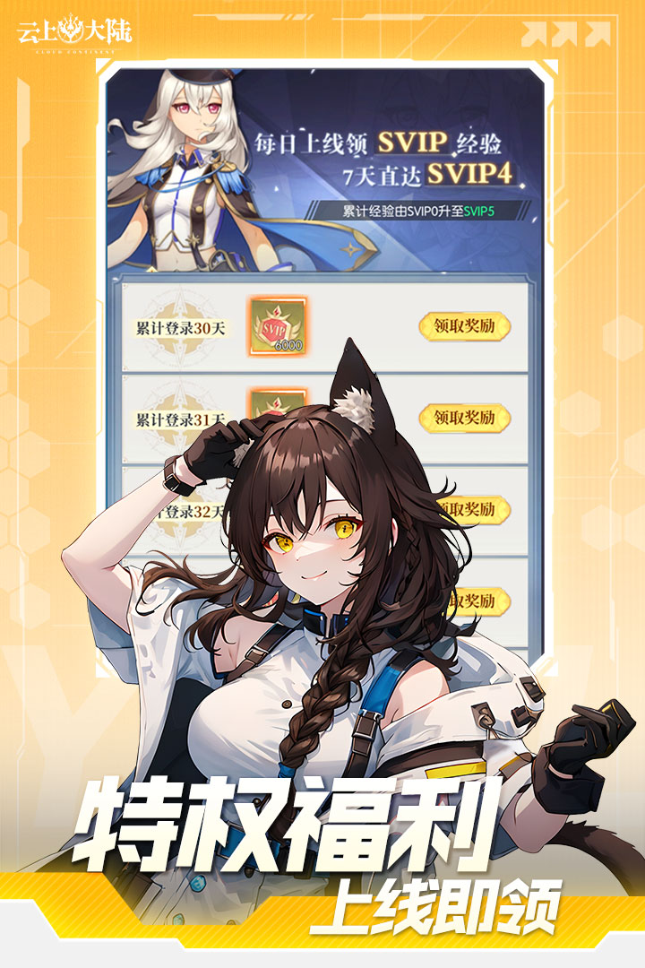 云上大陆,一个梦幻绮丽的多元世界。这里有广袤无垠的奇异大陆,山川壮丽、秘境丛生,蕴藏着无数宝藏与惊喜。独特的魔法体系,让玩家可自由施展炫酷技能。丰富多样的玩法,如刺激的竞技对战、趣味的生活养成等一应俱全。还有高度开放的社交系统,能结识五湖四海的伙伴。在云上大陆,开启一场前所未有的冒险之旅,书写属于你的传奇篇章!