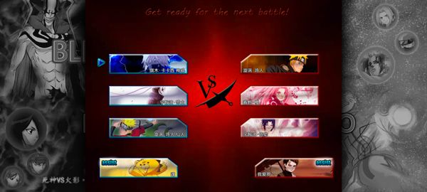 2、游戏内有多名死神和火影中的角色可以选择,玩家可选择自己的3名角色,以及电脑三名角色;