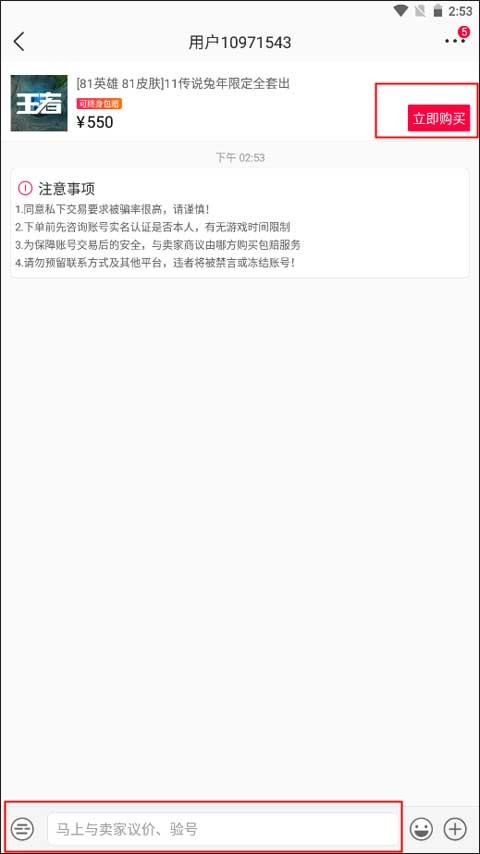 5、跟卖家开始议价、验号,最后谈好之后就可以立即购买账号即可。