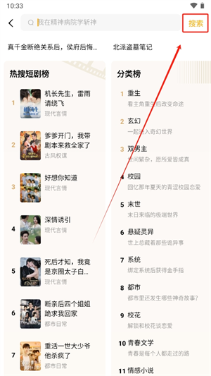 2、也可以点击右上角的【搜索】,输入关键词精准查找小说;