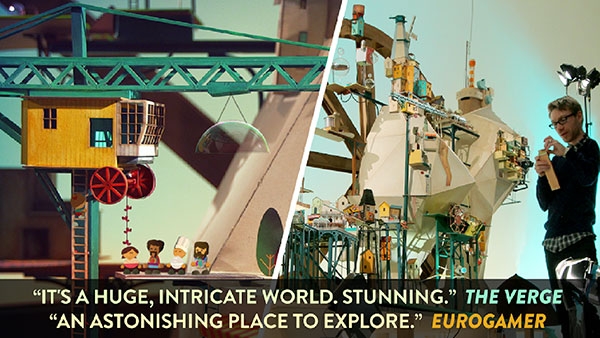 1、纯手工建造的游戏世界,游戏中所有的场景都是由纸、卡纸、胶水、微型灯和马达等构成;