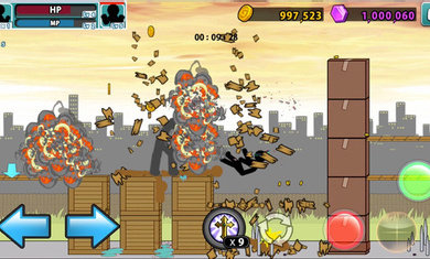 在这款愤怒的火柴人5游戏中道具可以分为两种,一种是可以主动释放的,类似于下图中的这个,使用的方式是点击就可以了!