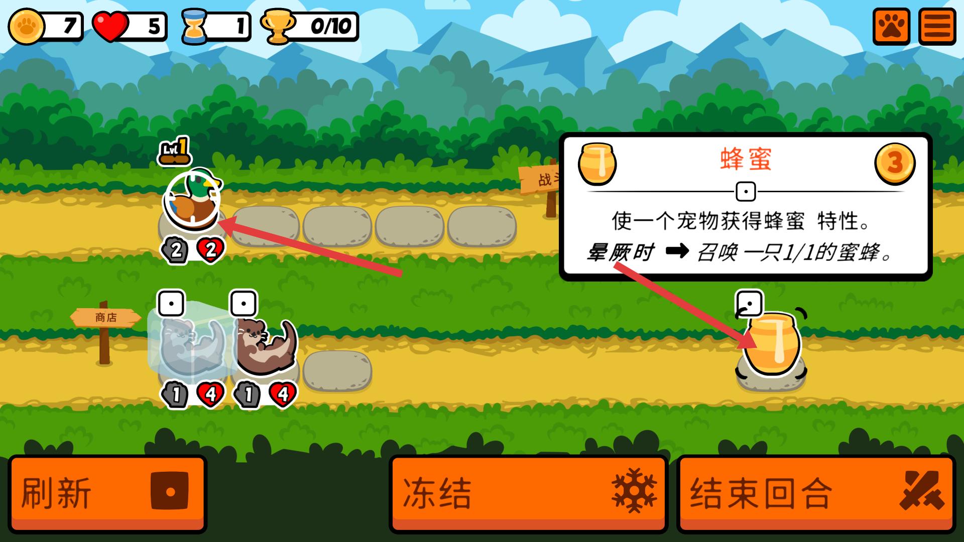 3、蜂蜜可使一个宠物获得蜂蜜特性,宠物晕厥时能召唤一只蜜蜂,合理利用蜂蜜,可增强宠物战斗能力。