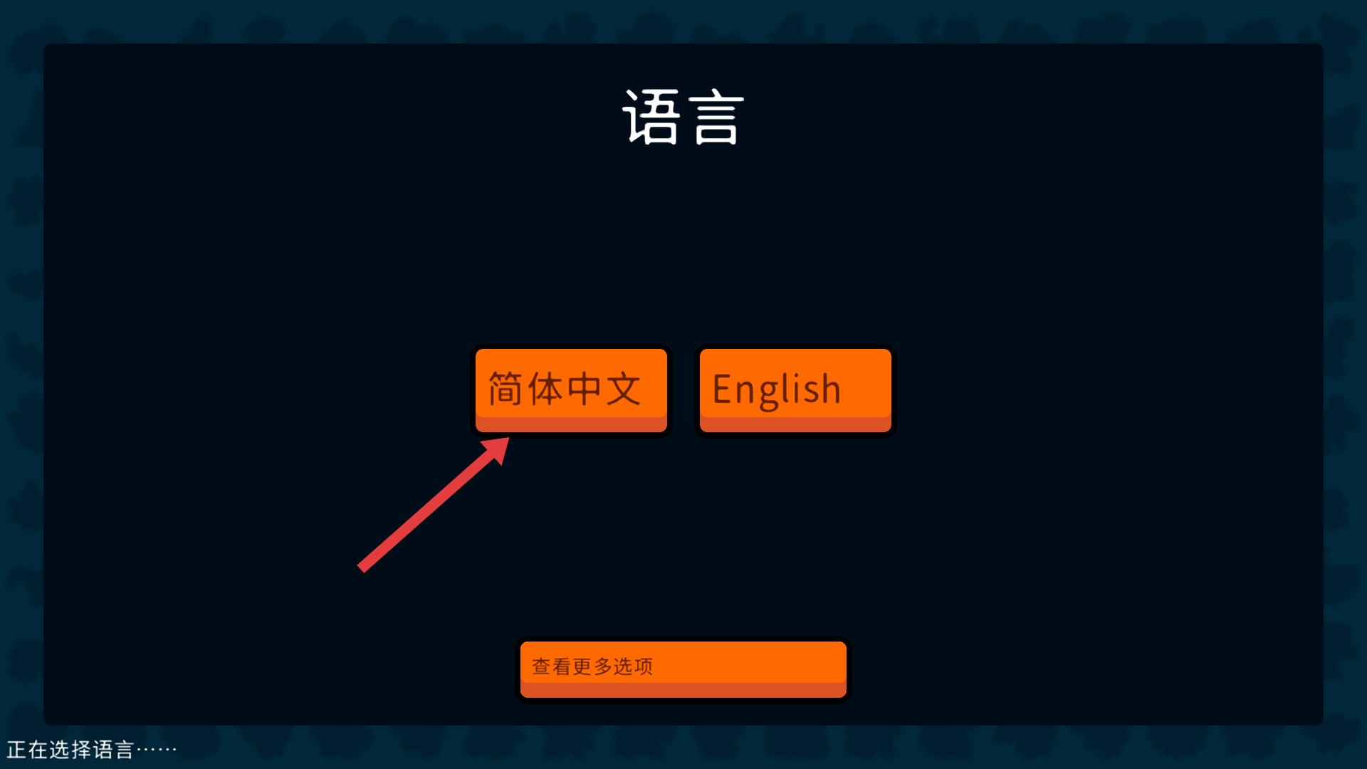 1、游戏语言选择界面,有简体中文和English两个选项,点击简体中文,可将游戏语言设置为简体中文,方便后续操作与理解。
