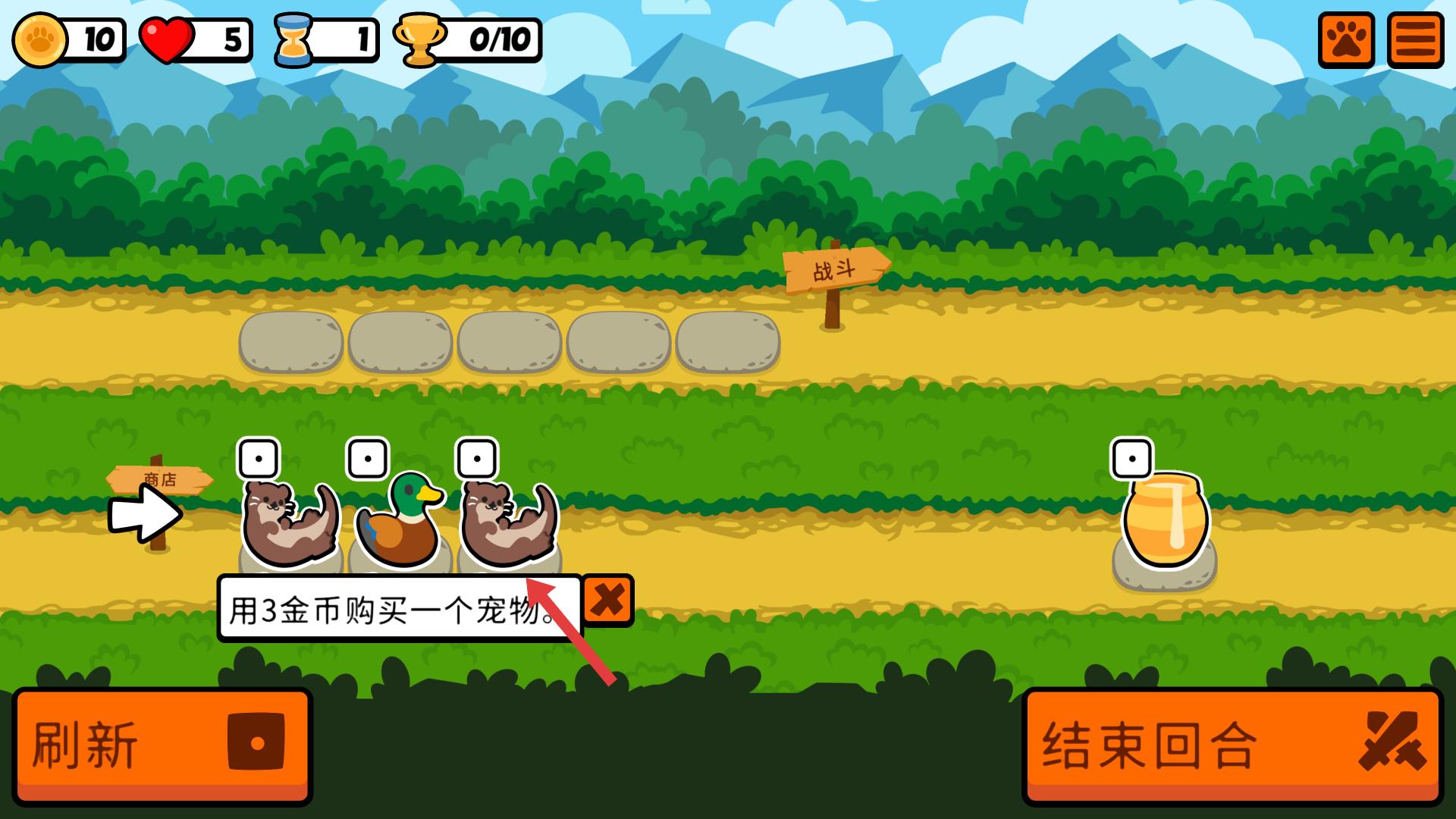 2、在游戏商店相关界面,可用3金币购买一个宠物,购买宠物能充实阵容,为后续战斗等玩法提供助力,提升游戏体验。