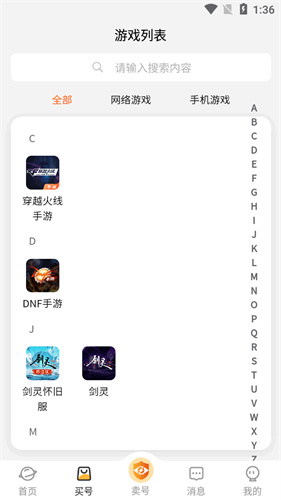 1、玩家可以根据需求去搜索心仪游戏账号及装备。软件有着丰富的游戏账号资源。