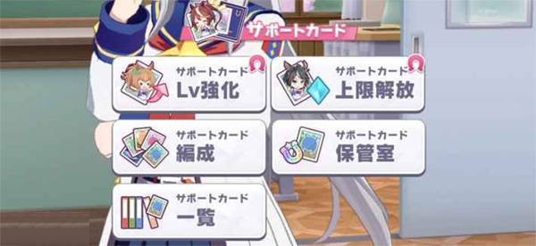 编入编组的支援卡片会在培育中发生事件,带来各种各样的效果。因为训练的效果也会发生变化,所以根据稀有度和卡片种类的不同,赛马娘的培育度也会有很大的变化。如果事先强化支援卡片,在培育中得到的加成也会变多。因此,在开始培育之前,应当强化编组的支援卡片。