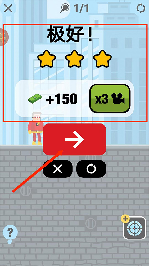 5、敌人被击飞,顺利通关,获得评分和奖励,选择“下一关”继续游戏。