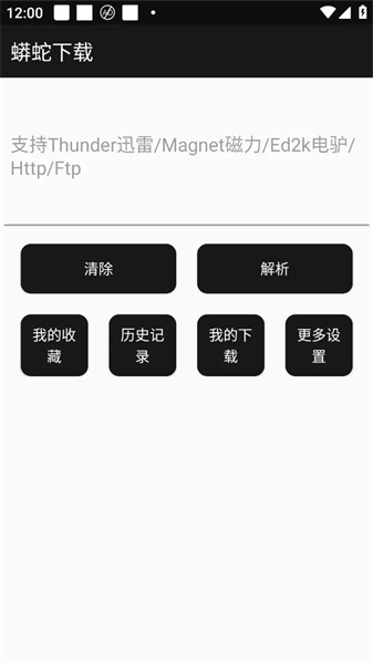 3、打开蟒蛇下载器,可直接粘贴磁力链接进行解析下载。若通过蓝白搜索调用下载,可点击“我的下载”查看任务;