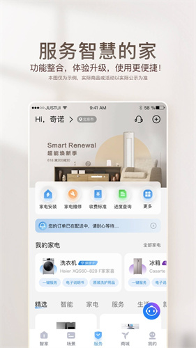 2、智能商城服务,集成官方商城,便捷选购各类家电,从衣物护理到饮食健康,满足所有家庭使用。