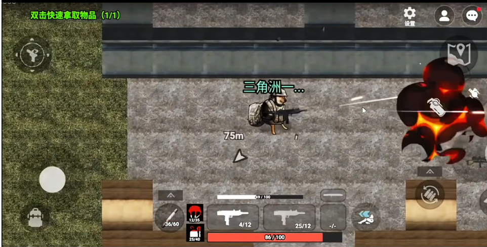 1、游戏开始时有新手教程,左侧控制移动,右侧控制开火,助玩家快速上手。
