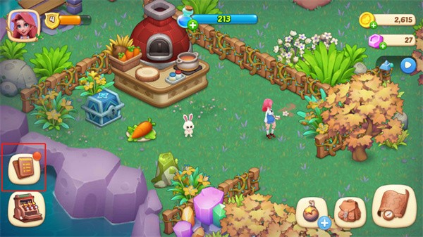 1、打开梦幻魔法屋游戏,左下角有一个任务系统,点击即可查看;