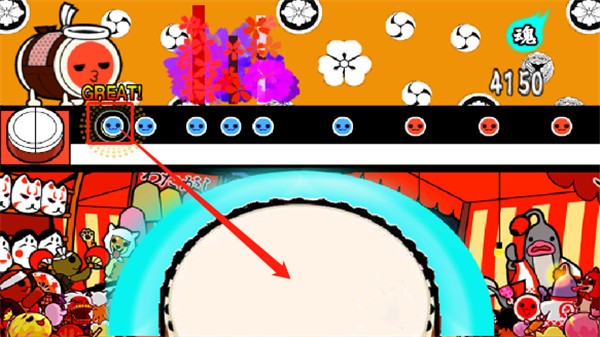 游戏内碰到红色鼓点,玩家需要点击敲击鼓面