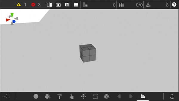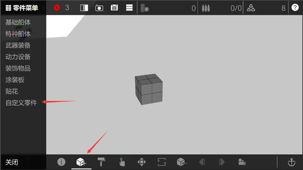 1、这八个方块即是您的图纸的初始内容,当您逐渐熟悉游戏后,可以尝试这样从零开始。作为初学者,我们建议您可以试试”自定义零件“这一便捷方式进行设计。