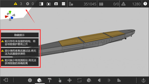 2、自定义零件是其他提督上传的零件组合体。这其中有各类舰体、武器结构、上层建筑等。您可以自行选择您喜欢的部分进行组装并根据左侧提示完成修缮,这些提示会提示您的战舰存在的问题。