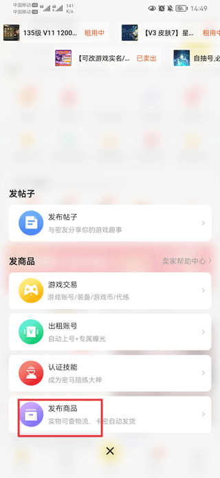一、打开密马游戏交易app,点击发布。
