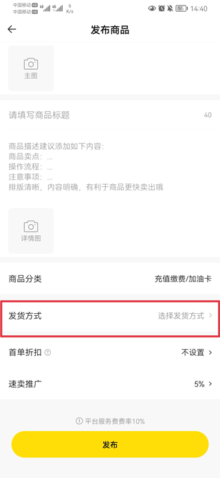 二、点击发布商品,选择交易的商品,如加油卡。