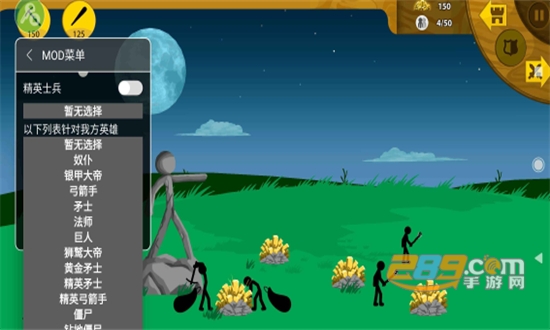 2、进入最开始的关卡,你只可以召唤矿兵和木棒人,此时你需要召唤一些挖矿兵进行挖矿,然后获取金币召唤木棒人攻击敌方,将敌方打败即可通关。
