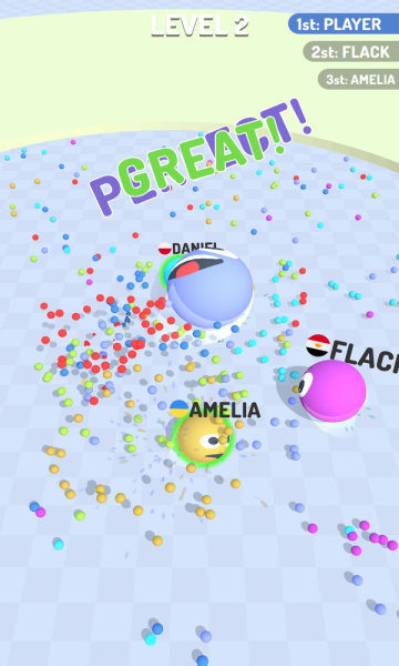 3、不一样的游戏机制:你消灭的敌人将传送到你对手的场地里,凭借你的球球和绝佳的策略,来给你的对手制造更多的麻烦。
