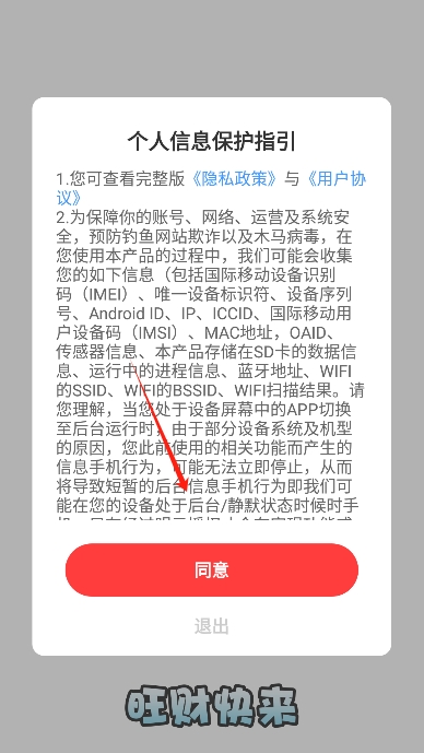 2、进入后阅读并同意旺财快来红包版的用户协议