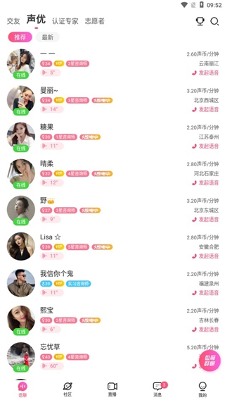5、点击进入语聊,这里很多优质的声优主播,大家可以用声音进行交友。