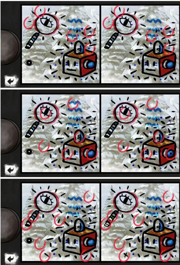 1、中庭右侧得到变形物7?(怀表),中间位置得到【石头片】,将其放在左侧凹槽处,找不同,如图②,得到【四个盾牌的方向】,解开左侧门锁,如图③,进入议会厅