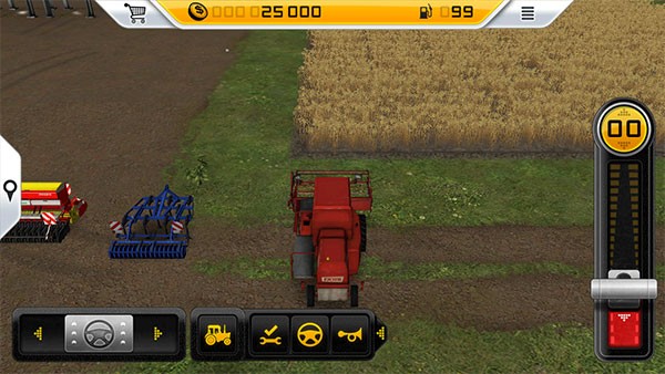 初始农场有两块农田,一块草地,两台拖拉机,一台收割机,一台中耕机,一台播种机,一台化肥播撒机以及一台运输车。同时仓库中海油小麦、玉米、油菜籽各60,000公升的储藏【基本上就是我们的启动资金来源啦】。