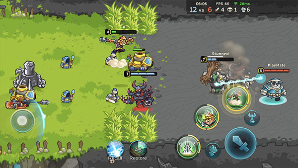 3、游戏采用水平地图单程推塔模式,摧毁敌人基地并获胜。