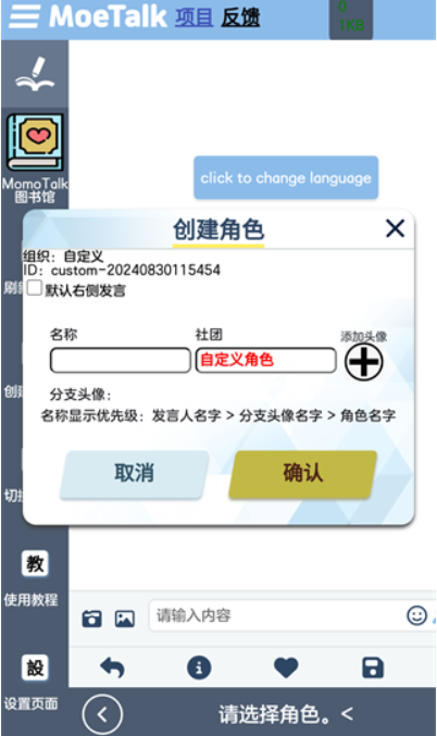 1.轻松创建虚拟角色,只需输入角色名称和社团信息即可一键生成。
