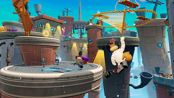 3、接着趁水涨满前跳到有冰冻果冻的平台上,然后趁水位下降前把果冻丢到水里。