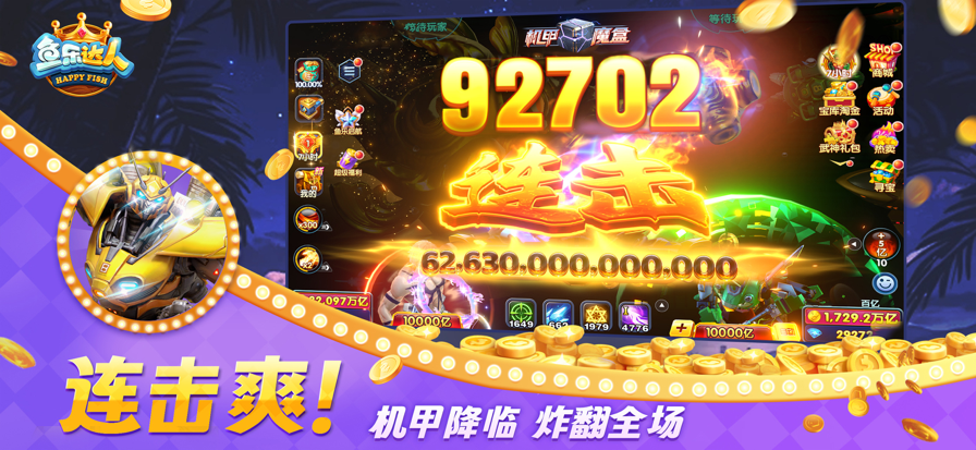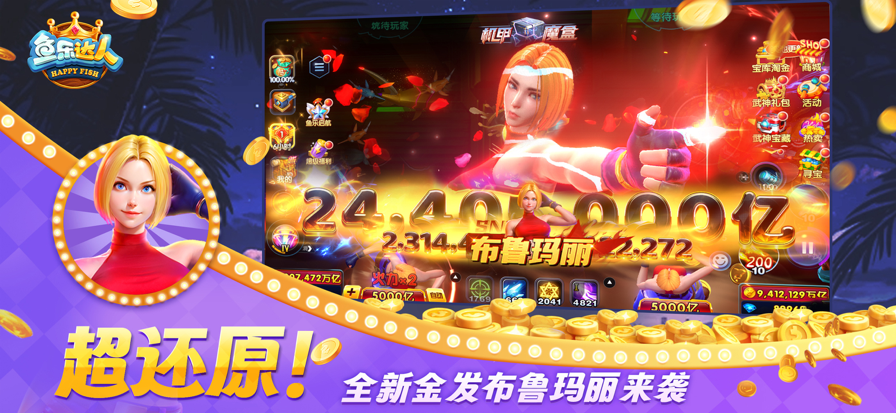 还原经典街机,千万级巨炮横扫渔场爆金不停,真实体验一炮过亿爽翻天。