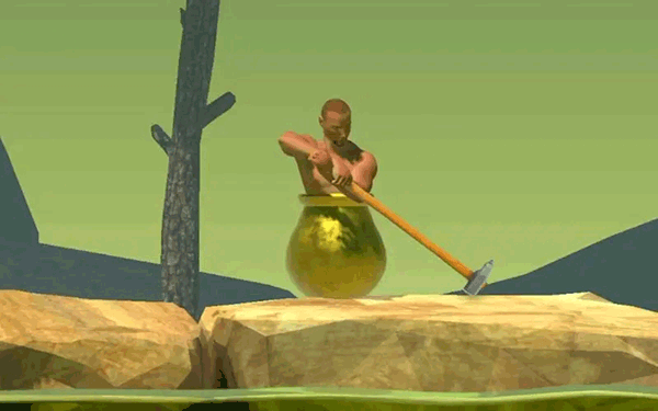 第一点:“画圆”裸男的锤子和和身体可以看成一个圆,玩家在操作的时候相当于不断的用鼠标去画圆儿大部分的地方需要玩家比较完整的画出一个差不多的圆才能跳过障碍。这刚开始觉得很容易,但是随着时间增长会变得越来越难。也就是说,做一次不难,难的是一只这么做。