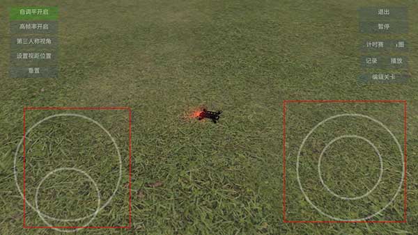 2、进入游戏后有左右两个按钮,左边可以控制无人机的加速方向,右边可以控制无人机机头的指向