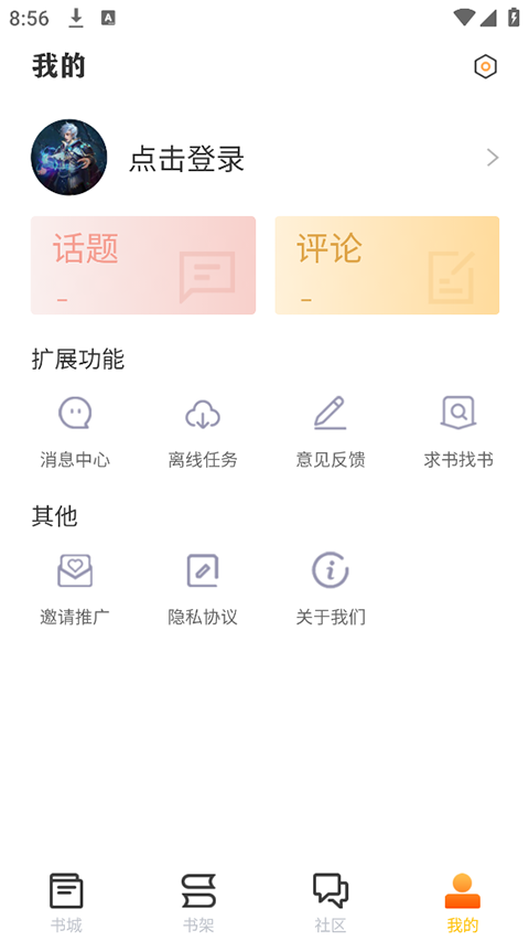 2、多种类型都能够自由的选择,还可以在社区论坛中和其他的书迷一起互动交流。