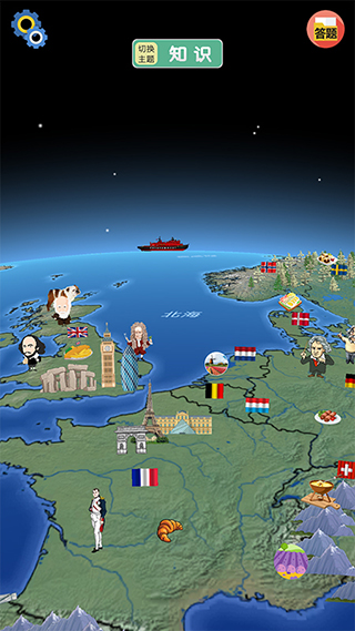 可以显示和隐藏地球上的国旗和图标,了解各个国家的地理位置。