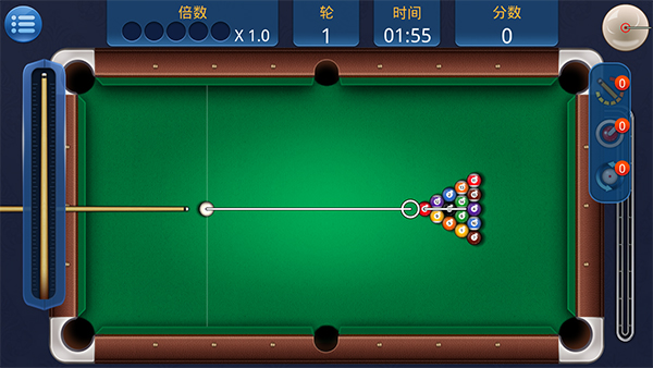 4、游戏还原桌球真实玩法,你需要搭配物理参数,看谁的进球多谁获胜。